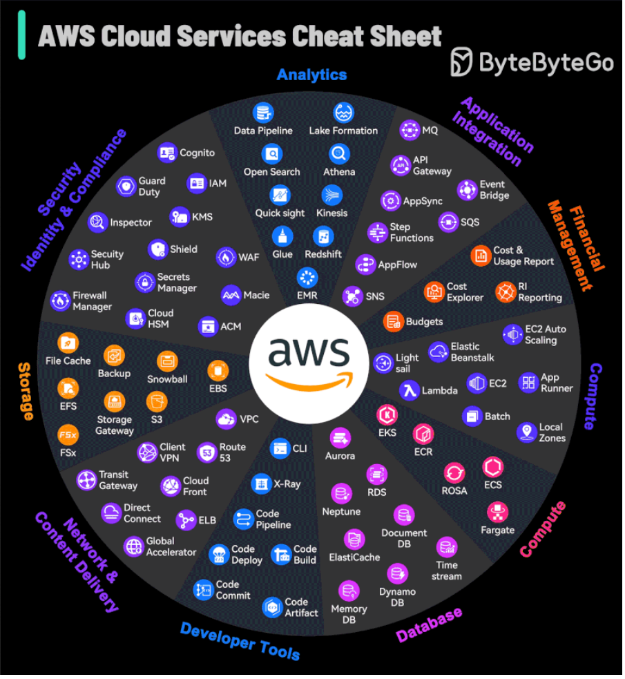 Also, here is a a nice AWS Cloud Services Cheat sheet from ByteByteGo, one of my favorite place to learn System design. This cheat sheet shows the main AWS services and their functions, you can print and keep this with you for quick reference