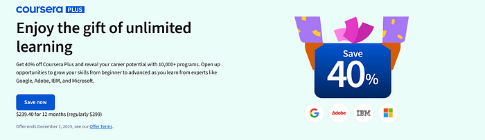 That's all about why Join Coursera Plus on this Black Friday. If you ask me, Coursera Plus at 40% OFF ($240/year) is genuinely one of the best deals for tech professionals in 2025.